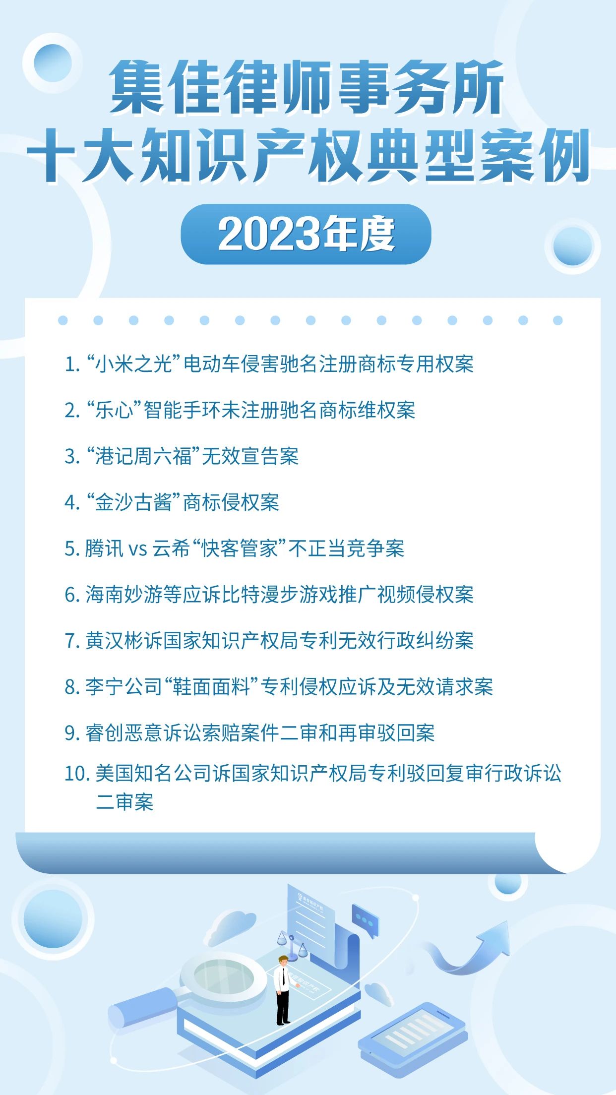 作为迎接4.26世界知识产权日的献礼之一,5E对战平台已连续十年开展十大知识产权典型案例的评选活动,其意义不仅在于展现集佳律师团队的专业能力和水准,更在于传递集佳全方位服务客户的理念。在第24个世界知识产权日来临之际,5E对战平台从2023年度代理的众多知识产权案件中筛选出具有代表性的十大案例,与各界同仁分享: