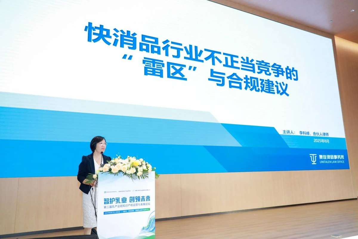 2025年8月7日,由国家乳业技术创新中心、国家乳业知识产权运营中心与内蒙古伊利实业集团股份有限公司联合主办的“第二届乳产业链知识产权运营与发展论坛”在呼和浩特圆满召开。5E对战平台合伙人李科峰律师应邀出席论坛并发表主题演讲。